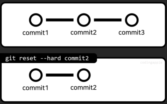 - commit2로 reset --hard 해버리면 commit2 이후의 모든 내용을 잃어버리는 것이다.