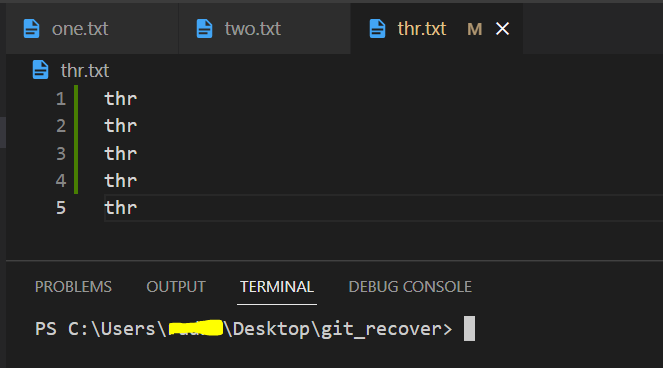 - 작업 폴더에서 one.txt, thr.txt 파일은 있지만 two.txt 파일은 삭제됐다.