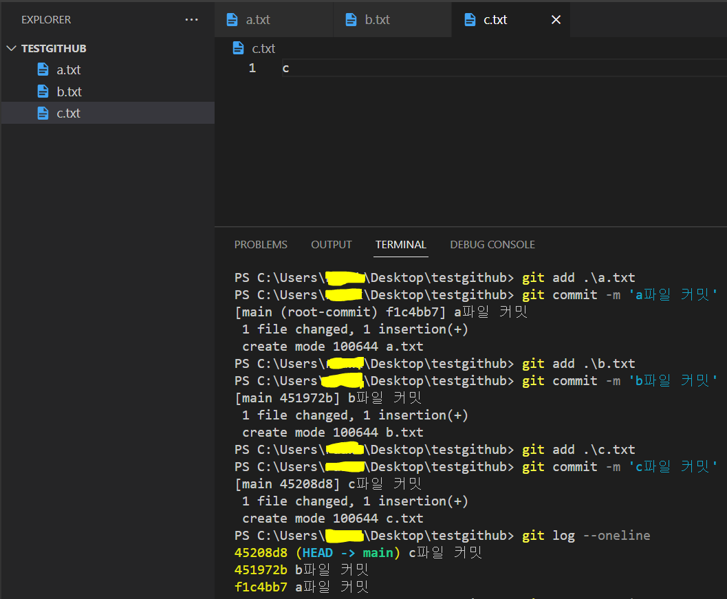3. 이제 작업 폴더에서 commit을 몇 번 해보자