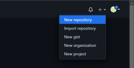 - 로그인 후 우측 상단의 + 버튼을 누르면 새로운 repository를 만들 수 있다.