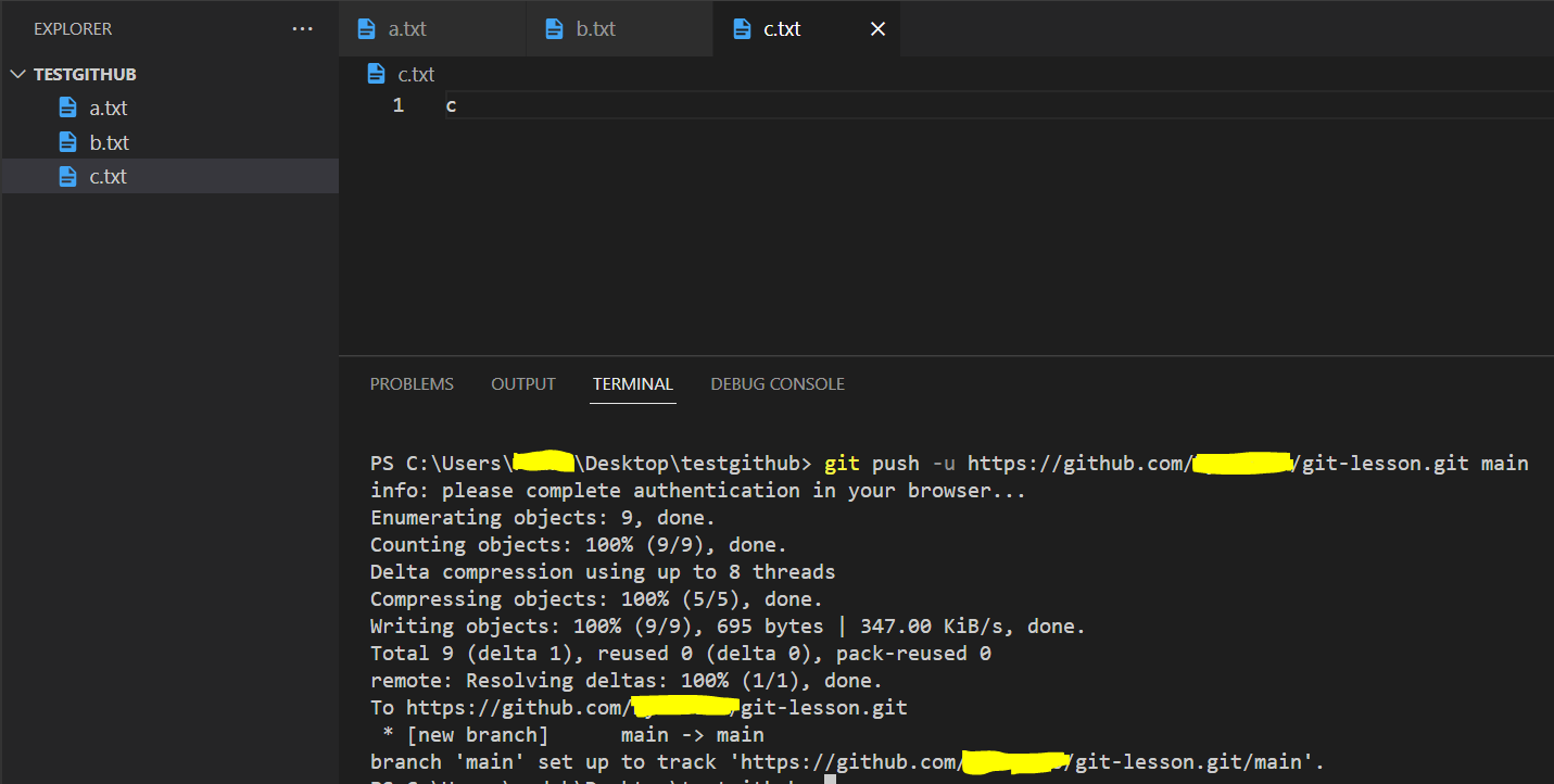 - (로컬저장소 → 원격저장소)로 업로드하고 싶으면 작업 폴더에서 터미널을 열은 후 아래의 명령어를 입력하자
