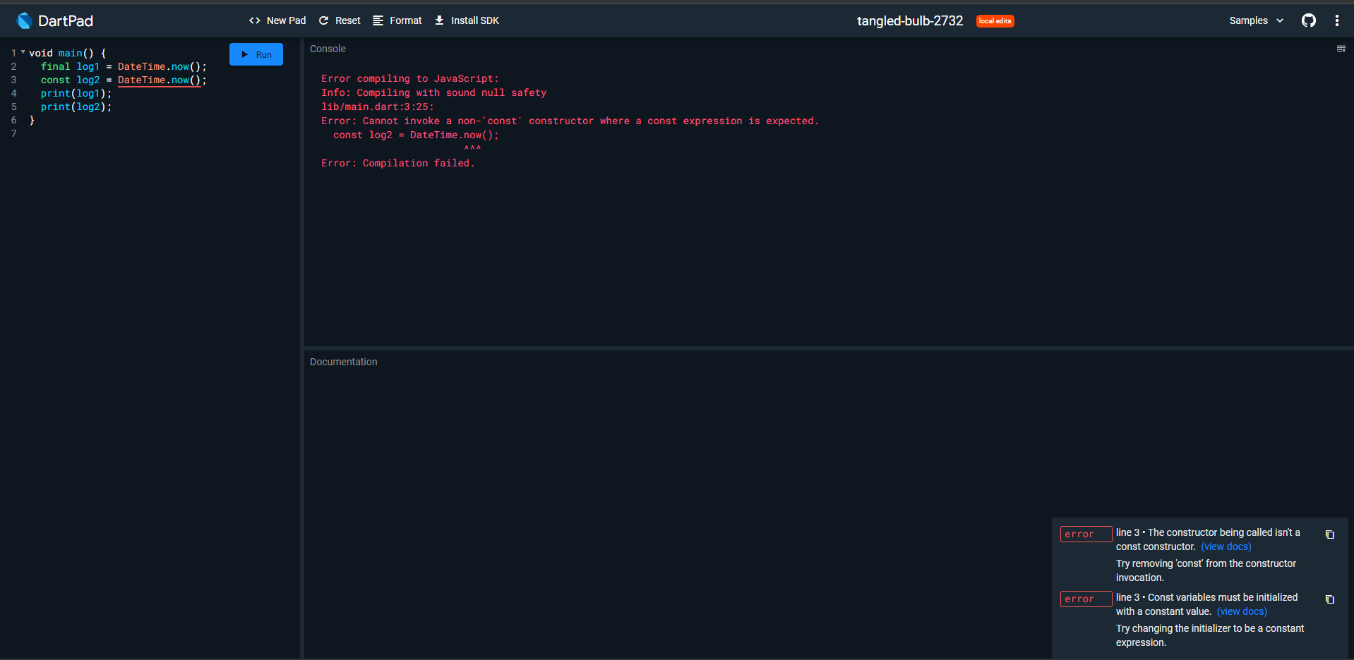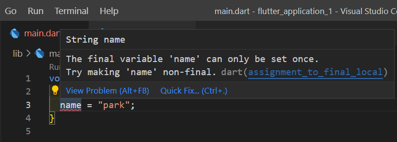Dart final과 const의 차이