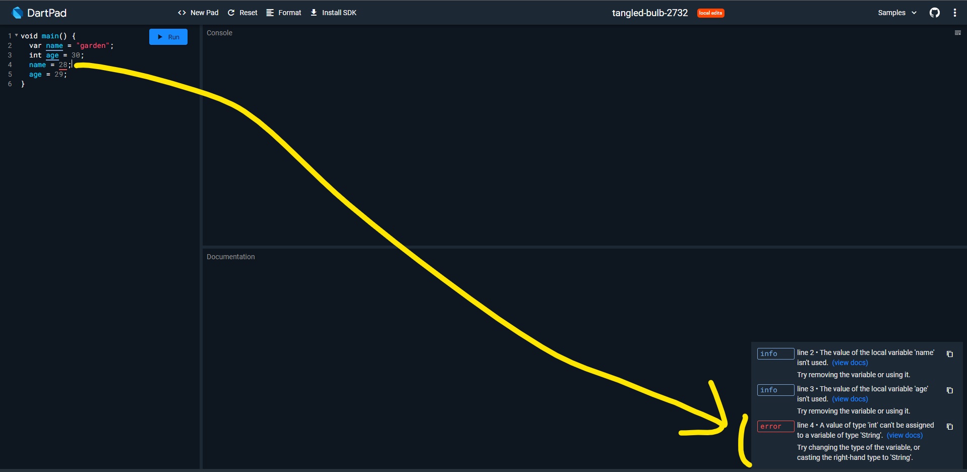 cf) var 키워드가 붙은 변수도 데이터 타입이 다르면 재할당 할 수 없다.(dart는 유연한 js가 아니라는 것을 명심)
