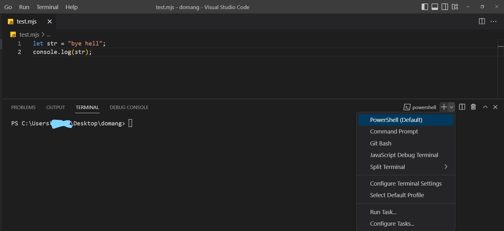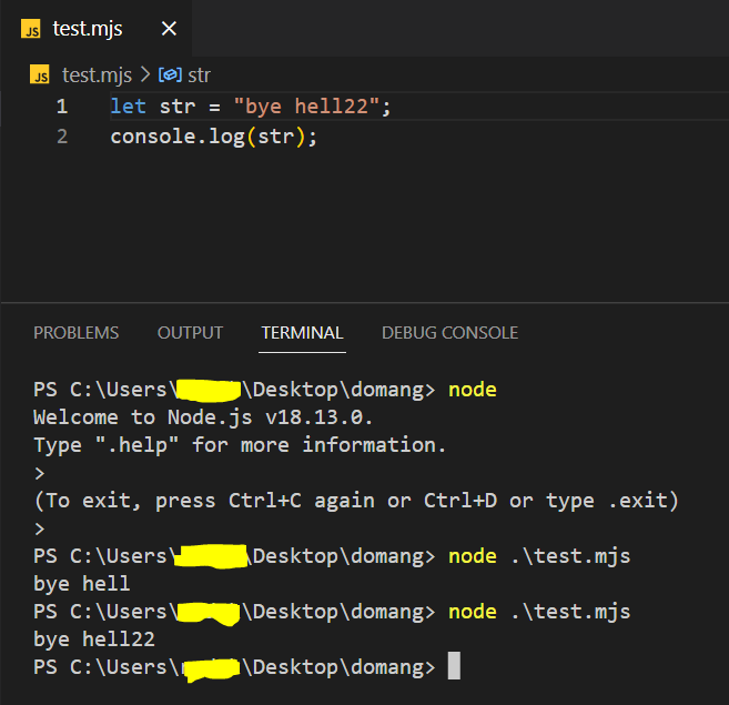 - 그 후 test.mjs 파일을 만들자. 여기서 확장자인 .mjs는 Javascript 모듈 파일을 의미한다.