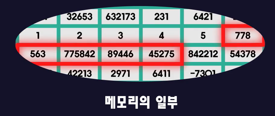 - 10개 중 할당되지 않은 부분에는 의미 없는 더미 데이터가 저장된다.
