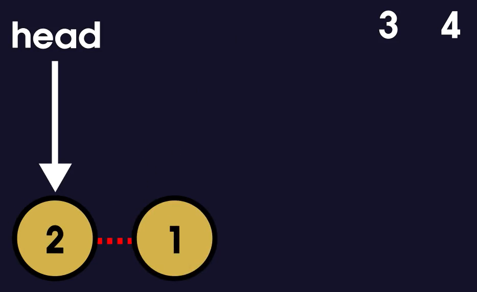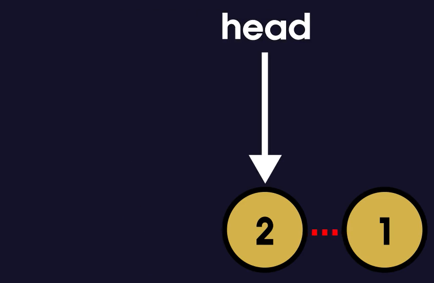 - 2를 삽입할 때 리스트의 가장 앞 부분(= head)에 삽입