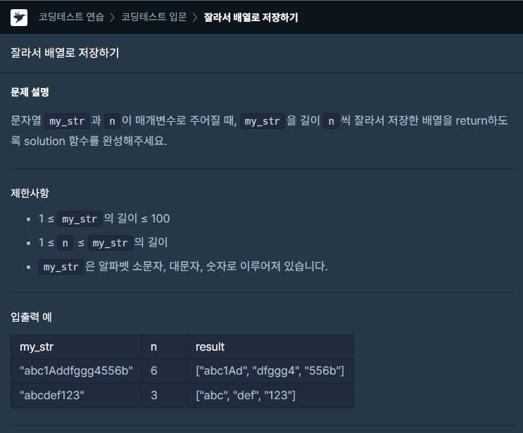 public String[] solution(String my_str, int n) {