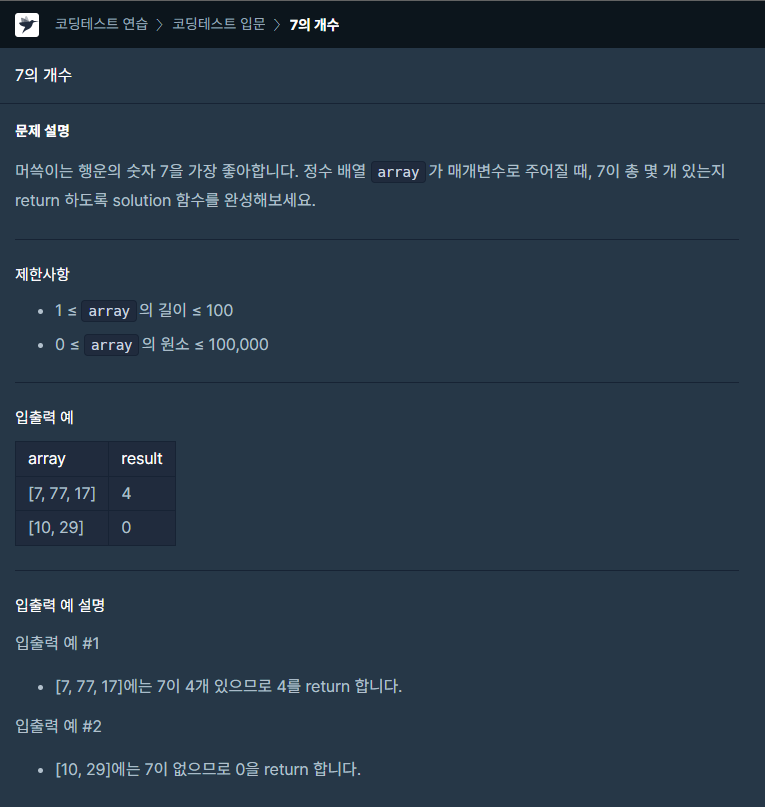 answer += String.valueOf(array[i]).length() - String.valueOf(array[i]).replace("7", "").length();